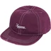 Distressed double-layer cotton chino twill 6-Panel hat with custom debossed leather strap closure. Embroidered logos on front and back.