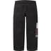All cotton twill. Classic 5-pocket style with zip fly and single coin pocket. Lenticular patch at pocket and embroidered graphic on back leg. Original artwork by Mark Leckey.
