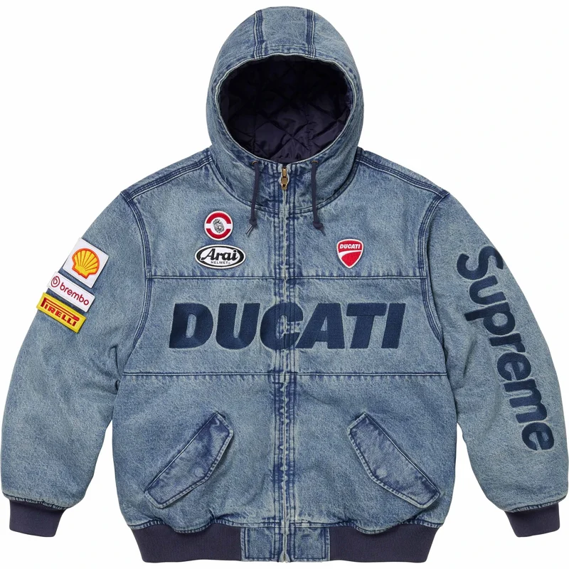 All cotton canvas with fill and quilted taffeta lining. Full zip closure with snap flap hand pockets at lower front and interior chest pocket. Knit rib cuffs and hem. Embroidered logos on front, sleeve and back. Embroidered Shell, Arai, Brembo and Pirelli logo patches on chest and sleeve. Designed by Drudi Performance.