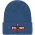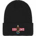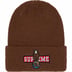 Acrylic cuffed beanie with embroidered patch on cuff.