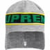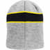 Acrylic earflap beanie with jacquard knit logo and jacquard reflective stripe. Embroidered graphic on back inner cuff.