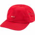 Water resistant nylon 6-Panel hat with jacquard logo webbing strap closure. Enamel logo at front.