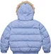 Water resistant Cordura® 2-Layer nylon ripstop with 700-Fill down insulated quilted baffles and poly lining. Full zip closure with snap placket. Double welt zip hand pockets at lower front and interior zip pockets. Removable hood with faux fur lining, interior elastic shockcord, tab adjuster and removable faux fur trim. Removable knit balaclava with zip closure. Elastic hem and cuffs with snap tab adjuster. Woven logo label at lower front and back neck tab. Embroidered graphic on cuff and printed logo on hood.