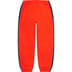 Bushed-back fleece with on seam hand pockets and single back patch pocket. Elastic cuffs and waistband with interior drawcord. Embroidered graphic and raised embroidered logo at right leg.