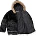 Faux fur with 3M® Thinsulate™ insulation and quilted poly lining. Full zip closure with welt hand pockets at lower front and interior chest pocket. Interior elastic shockcord at hem with interior knit rib cuffs. Faux fur trim at fixed hood and woven logo trim at hem.