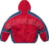 Water resistant Supplex® nylon taslan with full zip closure and welt zip hand pockets at lower front. Interior elastic shockcord at fixed hood and hem with elastic cuffs. Embroidered logos on shoulder and back. Faux fur reverse side with welt hand pockets at lower front.
