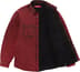 All cotton denim with faux shearling lining and quilted taffeta sleeve lining. Snap front closure with on seam hand pockets and patch pockets at chest. Logo appliqué at back.