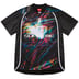 Poly jersey with printed graphic and knit rib collar. Printed graphic on chest. Printed logos on front and back hem.