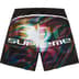 Poly jersey with on seam hand pockets and single back zip pocket. Elastic waistband with interior drawcord. Printed graphic on thigh and printed logo at seat.