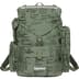 Water resistant cotton nylon blend with embossed logo lining. Cinch top closure with top buckle flap. Main compartment with single layer laptop sleeve. Zip pockets at front and sides. Velcro flap utility pocket at side and zip stash pocket and top flap. Padded back panel with buckle closure. D-Ring tabs at front, sides and straps. Woven logo webbing at top flap and label at lower front. 37L.