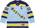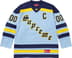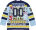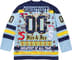 Poly jersey with tackle twill appliqué at front, sleeves and back. Embroidered graphics and velvet patches at back. Athletic label at lower front.