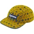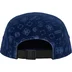 All cotton 13 oz. denim Supreme camp cap with flocked logo pattern.