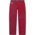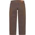 All cotton 13 oz. denim with distressed flocking print. Classic 5-pocket style with button fly, single coin pocket, copper oxide rivets and leather logo patch on back. Metal logo plate at coin pocket.
