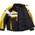 Water resistant 600D poly ripstop with fill and taffeta lining. Full zip closure with welt zip hand pockets at lower front and welt zip back pocket. Interior elastic shockcord at removable hood and hem. Velcro band closure at collar and velcro tab adjusters at cuffs. Embroidered logos on chest and back. Printed graphics on sleeves. Made exclusively for Supreme.
