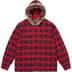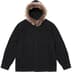 All cotton flannel with utility pockets at chest. Faux fur trim at hood and embroidered logo on left pocket.