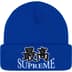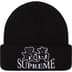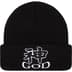 Acrylic cuffed beanie with raised embroidered graphic on front and back cuff.