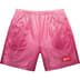 Poly with mesh lining. On seam hand pockets and single back zip pocket. Elastic waistband with interior drawcord. Athletic label at thigh.