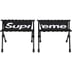 Lightweight, durable and packable stool. Aluminum alloy frame and 600D polyester seat with printed logo. 10.63" seat height. 14" x 9.5" x 11.5". Sold as a set of 2. Made exclusively for Supreme.