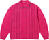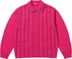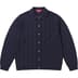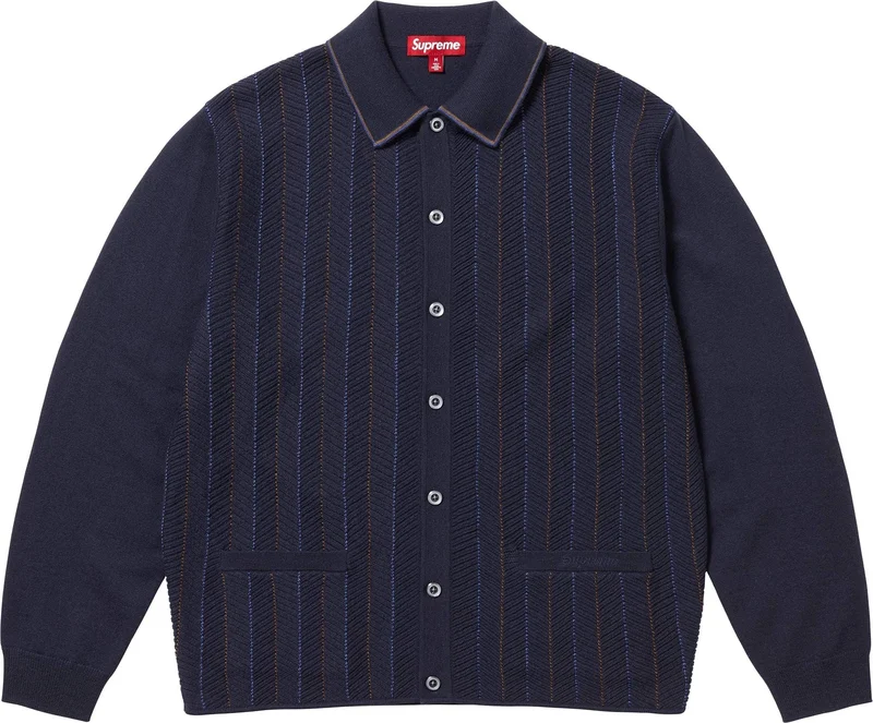 Wool blend with herringbone knit front panels. Button front closure with welt hand pockets at lower front. Embroidered logo at left hand pocket.