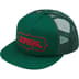 All cotton chino twill 5-Panel hat with mesh back and snap closure. Embroidered logo on front.