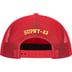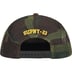All cotton chino twill 5-Panel hat with snap closure. Flocking printed graphic on front. Embroidered graphic on back.