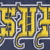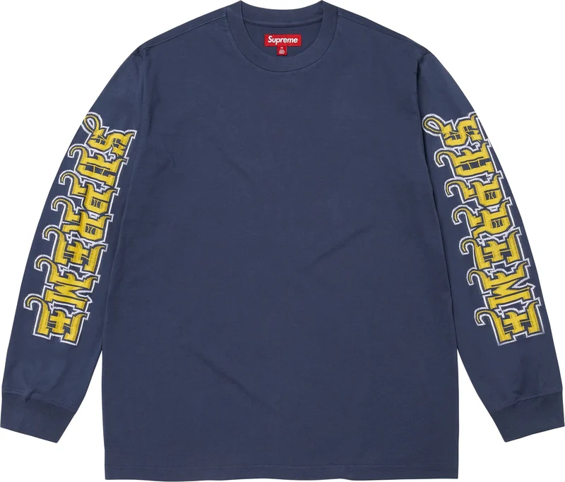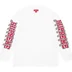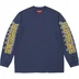 Cotton blend jersey crewneck with intarsia knit logos at sleeves.