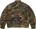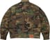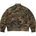 All cotton 14 oz. denim with frayed jacquard logo pattern. Button front closure with on seam hand pockets at lower front and button flap patch pockets at chest. Tab adjusters at cuffs and back hem with leather logo patch.