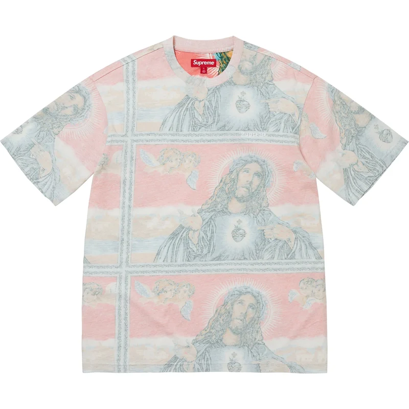All cotton jersey crewneck with inside-out printed graphic. Embroidered logo on chest.