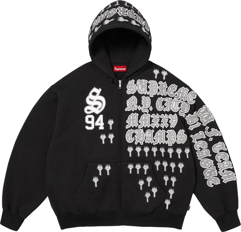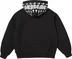 Brushed-back fleece with pouch pocket and full zip closure. Tackle twill appliqué with embroidery at front, hood and sleeve.