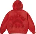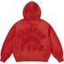 Brushed-back fleece with pouch pocket. Leather appliqué with printed graphic at front, hood and back.