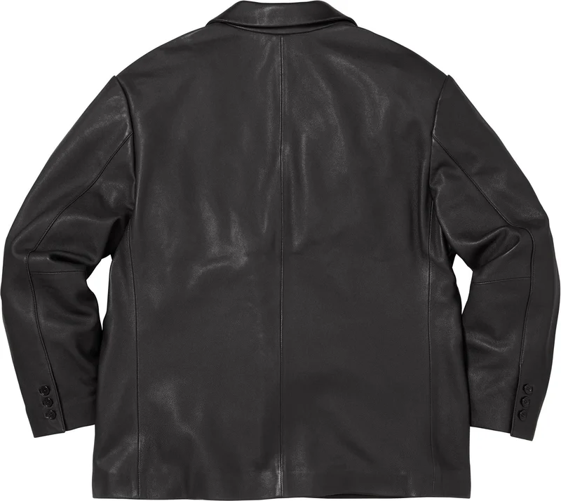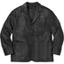 Lambskin leather with jacquard logo viscose lining. Button front closure with patch hand pockets at hip, patch pocket at chest and interior chest pockets. Notch lapel with functional buttons.