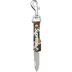 Stainless steel pen knife with printed logo calfskin leather casing and bolt snap closure. 5" with 1.9" blade. Made in Italy.