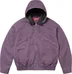 All cotton canvas with 3M® Thinsulate™ insulation and quilted taffeta lining. Full zip closure with welt hand pockets at lower front with dual top flap and side entry. Additional zip pocket at lower front and interior chest pockets. Removable hood with cowhide leather collar. Elastic hem with snap closure at cuffs. Embroidered logo on chest and woven logo label at back neck tab.