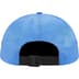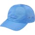Nylon 6-Panel hat with webbing strap closure. Debossed leather logo patch on front.