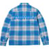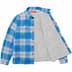 All cotton flannel with faux shearling lining and quilted taffeta sleeve lining. Snap front closure with on seam hand pockets at lower front and patch pockets at chest. Embroidered logo on back.