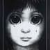 Supreme skate deck with natural veneer and black top ply. Printed graphic on bottom with printed box logo and artist's signature on top. Original artwork by Margaret Keane.