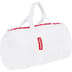 Poly eyelet mesh. Main zip compartment with printed logo binding. Adjustable shoulder strap and snap closures at handles. Woven logo label at front. 25L.