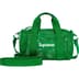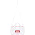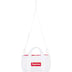 Poly eyelet mesh. Main zip compartment with printed logo binding. Adjustable shoulder strap and webbing handles at top. Woven logo label at front. 3L.
