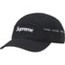 All cotton Supreme camp cap with jacquard logo webbing mesh side pockets.