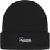 Acrylic cuffed beanie with raised embroidered graphic and embroidered logo on cuff.