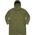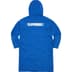 Water resistant lightweight nylon with snap front closure and welt hand pockets at lower front. Interior elastic shockcord at fixed hood and waist. Printed logo on back. Packable into interior pouch.