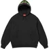 Brushed-back fleece with pouch pocket. Embroidered satin and tackle twill logo appliqué at hood and back.