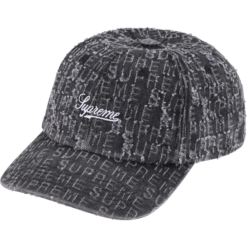 All cotton 15 oz. denim 6-Panel hat with needle punch logo pattern and self strap closure. Embroidered logo on front.