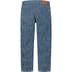 All cotton 14 oz. denim with needle punch logo pattern. Classic 5-pocket style with zip fly, single coin pocket, copper oxide rivets and leather logo patch on back.
