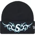 Acrylic cuffed beanie with raised embroidered logo on front cuff. Embroidered graphic on side and embroidered logo on back cuff.