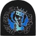 Acrylic beanie with printed logo on front and printed graphic on back. Original artwork by Andre Thompson.