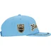 Cowhide leather 6-Panel hat with velcro strap closure. Embroidered graphics on front, visor, side and strap.