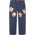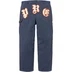 All cotton canvas. Utility style with zip fly, double knee, single coin pocket, copper oxide rivets, utility pockets and hammer loop at left leg with woven logo taping. Faux shearling logo appliqué at sides and seat.