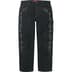 All cotton canvas with metal studs. Utility style with zip fly, double knee, single coin pocket, utility pockets and hammer loop at left leg. Printed logo on left leg.