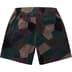 Cotton blend velour with patchwork pattern and poly tricot lining. On seam zip hand pockets and single back zip pocket. Elastic waistband with interior drawcord. Embroidered logo at thigh.